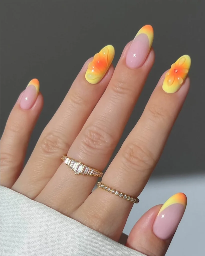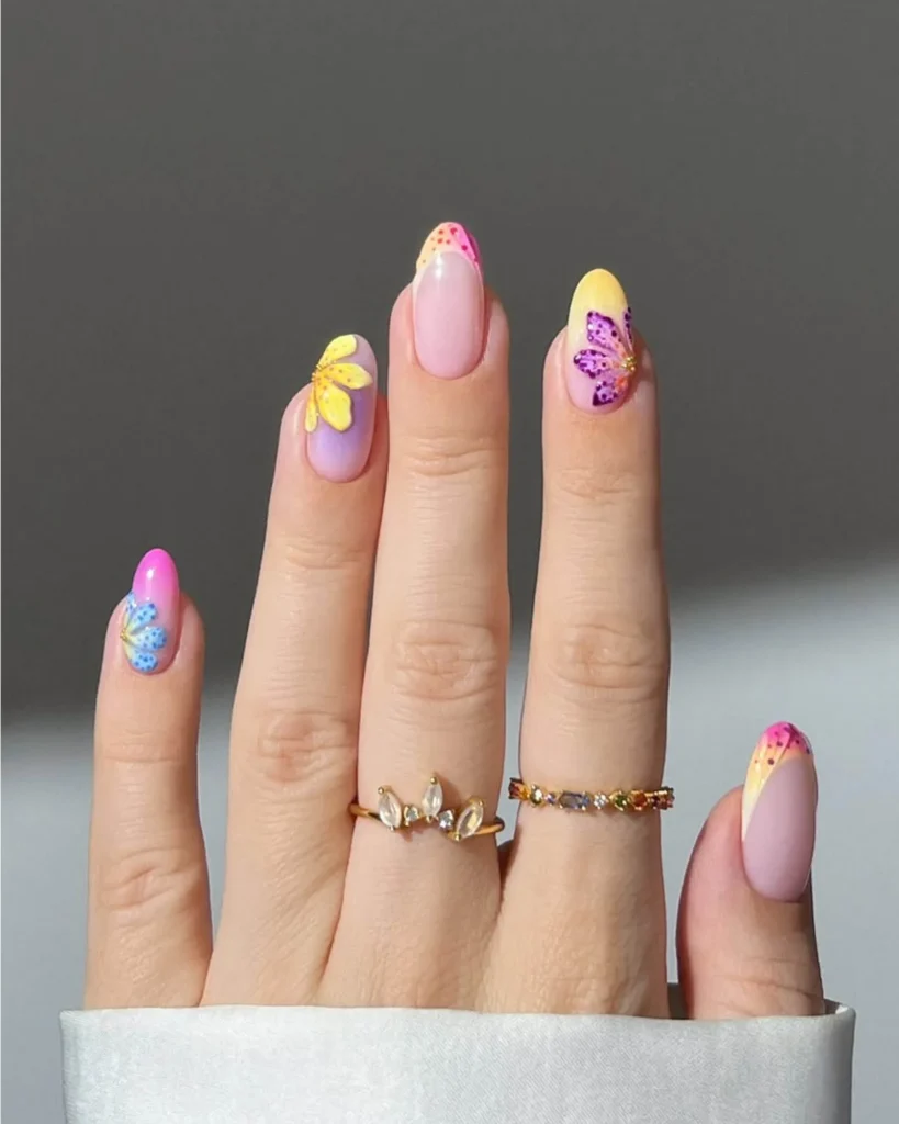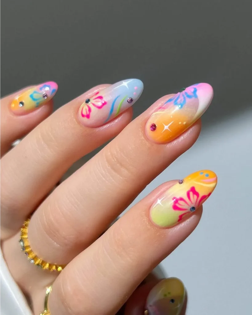 9.Floral neon nails