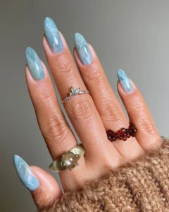 Marble nails continue their reign, thanks in part to blooming gel’s ability to keep colors fluid yet distinct. Artists are favoring earthy neutrals, espresso browns, and winter blues—but bolder color combinations are just as welcome.